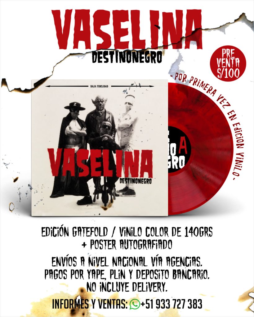 La banda peruana de rockabilly Vaselina ha anunciado una reedición especial de su aclamado álbum ‘Destino Negro’, que cumple 15 años desde su lanzamiento en 2008. Considerado como uno de los discos más influyentes de la escena local, ‘Destino Negro’ contiene clásicos del rock peruano como “Incendiemos el congreso”, “Valoras el dinero”, “Destino negro” y “Jessica”.