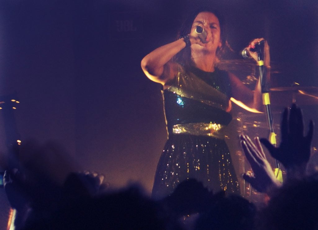 Pero volvamos al concierto. Bomba Estereo apareció en escena pasada la media noche y desde que salió Li Saumet  todo el local arrancó en interminables saltos. Esa mezcla de ritmos del folclor colombiano con música electrónica un poco de rock, reggae, dub y mucho más fue la fusión perfecta que se inyectó en el público desde los primeros segundos. Una mezcla que ellos llaman cumbia psicodélica, dos pulgares arriba.