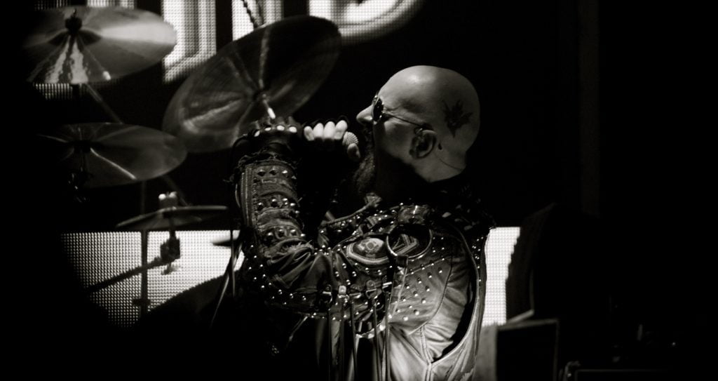 Tal como él popularizó en todo el mundo, descendió al escenario envuelto en un traje de cuero y metal. Ver a ese personaje caminar por el escenario emocionaba a cualquiera y más aun cuando su espectacular voz salió desde los altoparlantes. Ganándose el público en pocos segundos el concierto continuo con un Rob Halford emocionado mientras el público clamaba su nombre a todo momento.