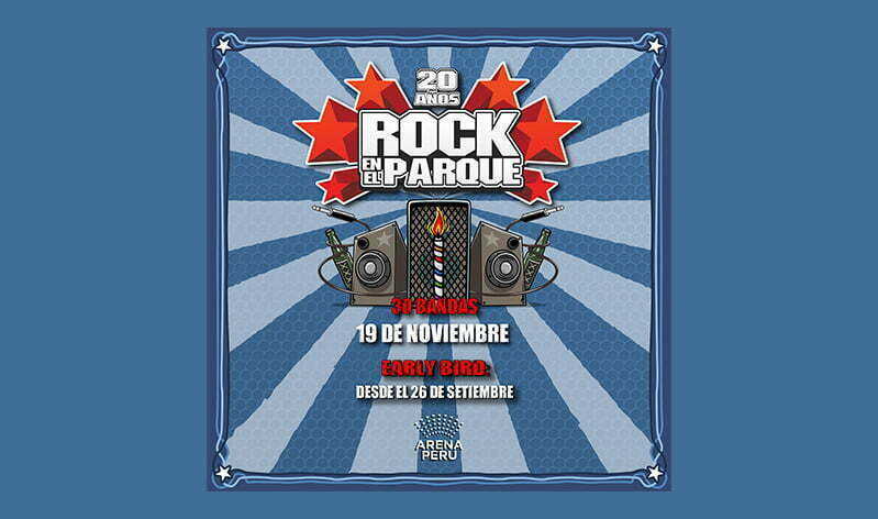 Rock en el Parque, uno de los festivales más importantes de la escena rockera local, acaba de anunciar su regreso, con una nueva edición. El primer festival de bandas de rock independiente de nuestro país vuelve en el marco de la celebración por sus 20 años. El evento de reencuentro será este 19 de noviembre, en el Arena Perú, y hasta el momento se ha confirmado la participación de más de treinta bandas locales, en dos escenarios especiales. El festival iniciará con venta de un lote de entradas Early bird, este 26 de septiembre, a un precio especial y hasta agotar stock.