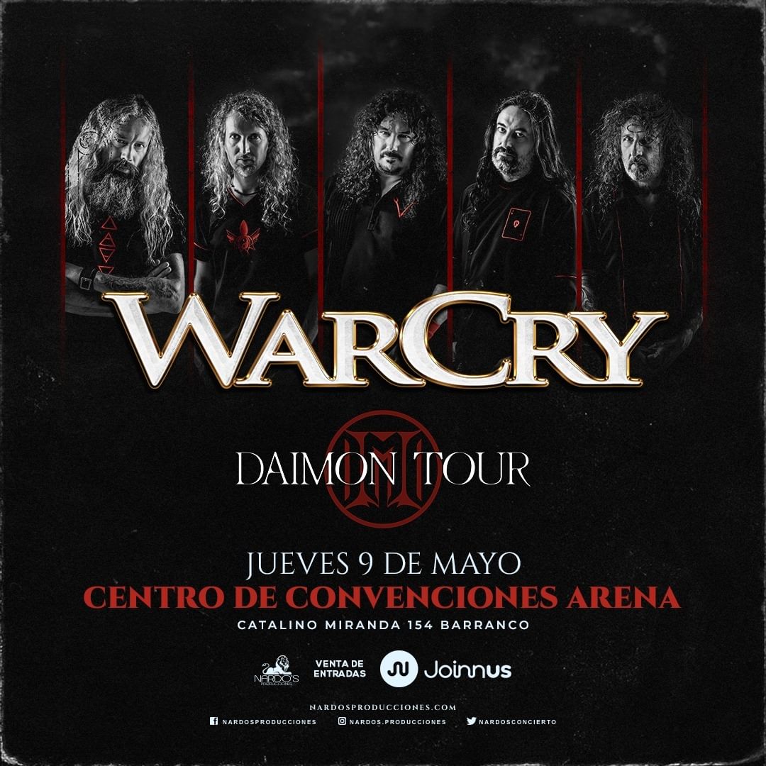 La banda española WARCRY regresa a Lima para dar un concierto este jueves 9 de mayo en el Centro de Convenciones Arena (Barranco).